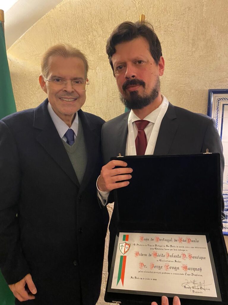 Na última quinta-feira, durante o tradicional Almoço das Quintas, a Casa de Portugal de São Paulo foi palco de uma cerimônia marcante: a entrega da Comenda da Ordem do Mérito Infante Dom Henrique ao Dr. Jorge Longa Marques, Cônsul-Geral Adjunto de Portugal em São Paulo. A condecoração homenageia personalidades que prestam relevantes serviços à cultura, à história e à divulgação de Portugal no mundo.