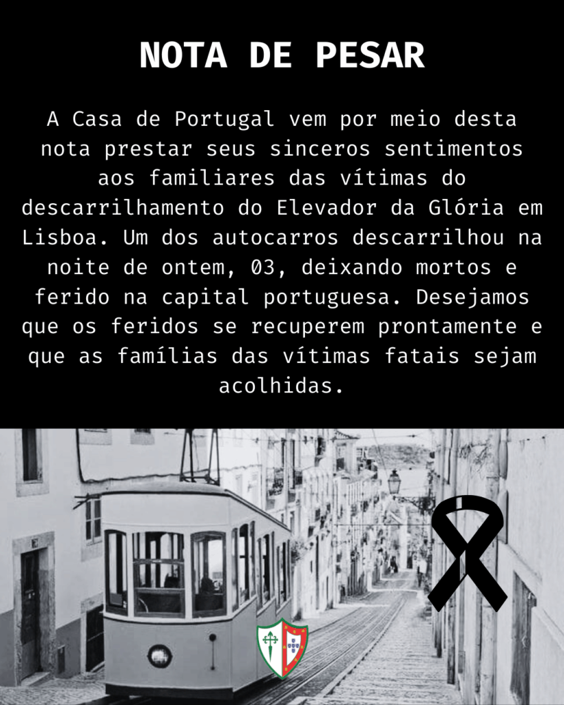 Desejamos que a cidade de Lisboa, enlutada mas resiliente, encontre forças para se recuperar e preservar sua memória, beleza e vitalidade acompanhadas de renovadas práticas de segurança que protejam a vida de todos.