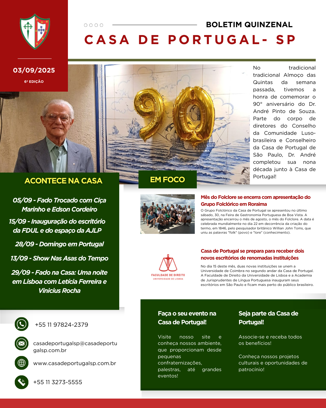 É com grande orgulho que a Casa de Portugal de São Paulo anuncia a inauguração do seu novo espaço cultural: o Museu da Música Portuguesa: “Fado, Folclore e Outros Encantos e Sons.” Este projeto é fruto de um entendimento que nos permite, hoje, inaugurar esta mostra permanente que celebra a riqueza e a diversidade da […]